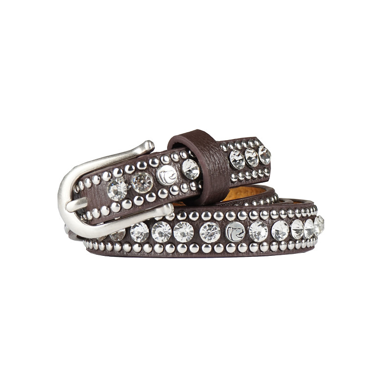 | Elegante dames riem afgewerkt met (glitter)studs in de kleuren zilver en metaal. Afgewisseld met HORKA paarden op enkele studs. Let op: Verkrijgbaar in verscheidene maten. Maten zijn gemeten t/m het middelste gaatje (exclusief de gesp). Bij 85 cm is het 1e gaatje op 80 cm, het middelste gaatje op 85 cm en het laatste gaatje op 90 cm. Breedte: 1,8 cm, gesp lengte: 3 cm. Materiaal: Onderzijde leer, bovenzijde PU |