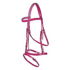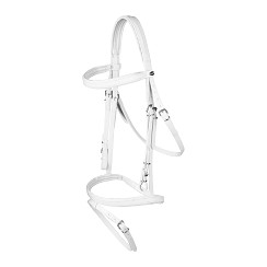 Kunststof hoofdstel met PVC straps en een nylon kern. Productspecificaties: - Engelse neusriem - Sterk Materiaal - Makkelijk schoon te maken, onderhouds arm - Inclusief rubber teugels |