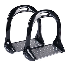 Deze stijlvolle aluminium beugels hebben een anatomisch design. De beugels zijn zeer veilig en geven stabiliteit en optimale ondersteuning aan de ruiter. Dit model is speciaal geschikt voor spring- en crossruiters. Het gekartelde titanium voetdeel zorgt voor een uitstekende grip en het verbrede voetdeel (6.5 cm) zorgt voor extra stabiliteit. |