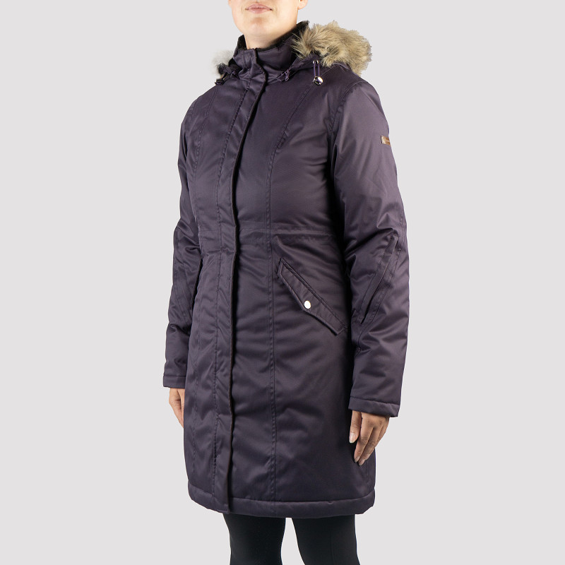 | Modieuze outdoor jas van waterdicht materiaal met getapete naden en windflappen aan de binnen- en buitenkant van de rits, wat deze jas perfect maakt voor verschillende weersomstandigheden. De jas heeft een afneembare capuchon met een imitatie bontrand. De jas is voorzien van een fleece gevoerde opstaande kraag voor extra warmte. De jas beschikt over vele handige details; voorzakken, binnenzakken, verborgen borstzakken en een split aan de achterkant, wat deze jas ook geschikt maakt voor het paardrijden. Productspecificaties: - Waterdicht 3000mm met getapete naden en ademend 3000gsm 24 uur - Afneembare capuchon met bontrand en trekkoord - Opstaande kraag met teddyfleece aan de binnenkant - Verstelbaar trekkoord in de taille aan de binnenkant - Tweewegrits met windflap aan binnen- en buitenkant - Voorzakken met drukknoop - Geribde manchetten aan de binnenkant - Verborgen borstzakken, binnenzak met rits - Split aan de achterkant met drukknop Materiaal: Buitenkant:100% gecoat polyester. Voering: 210T polyester. Vulling: 100% polyester, 200g |