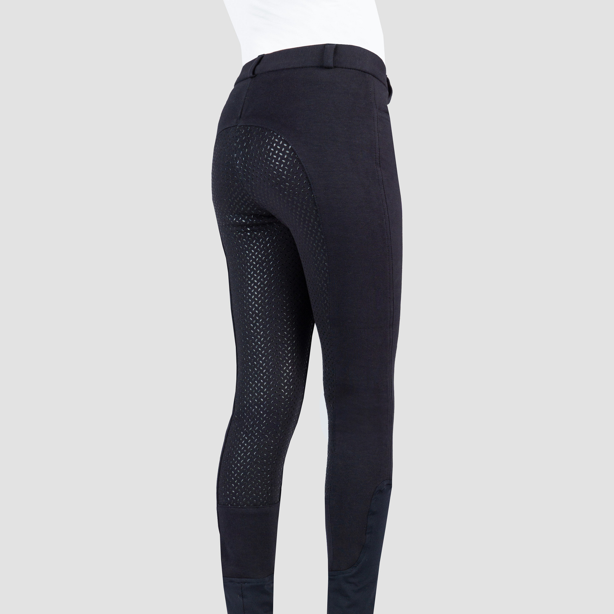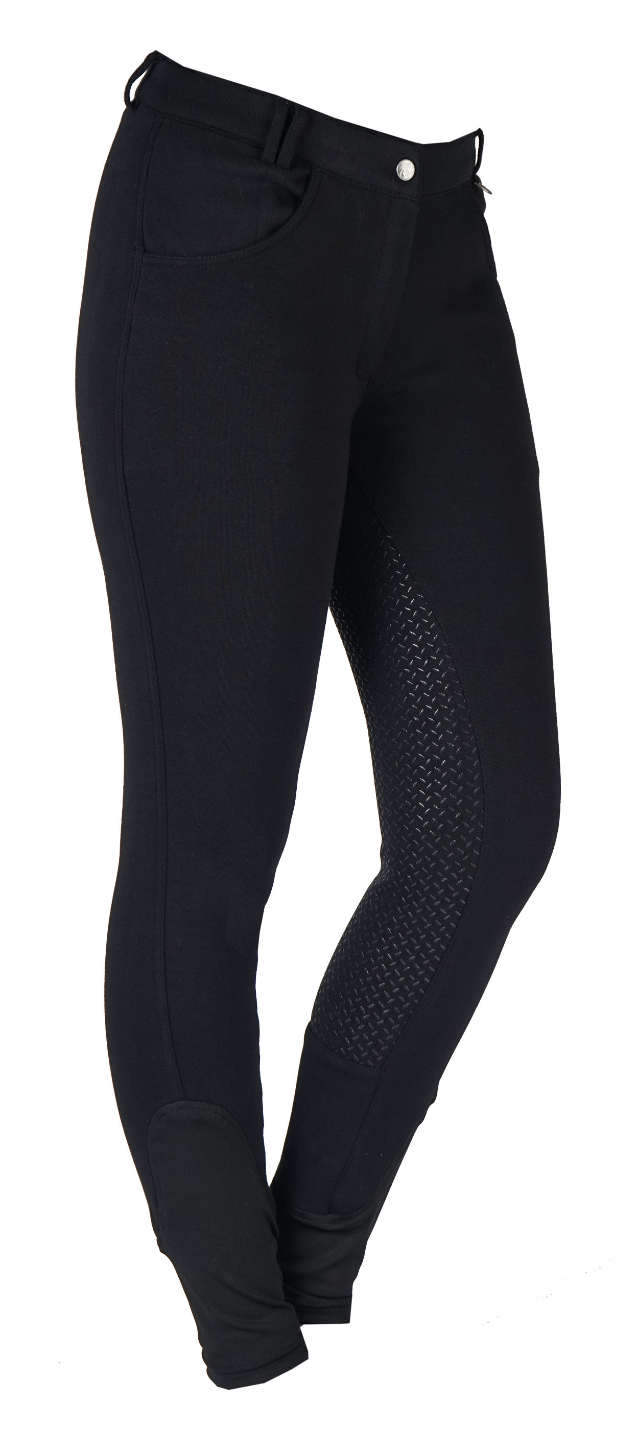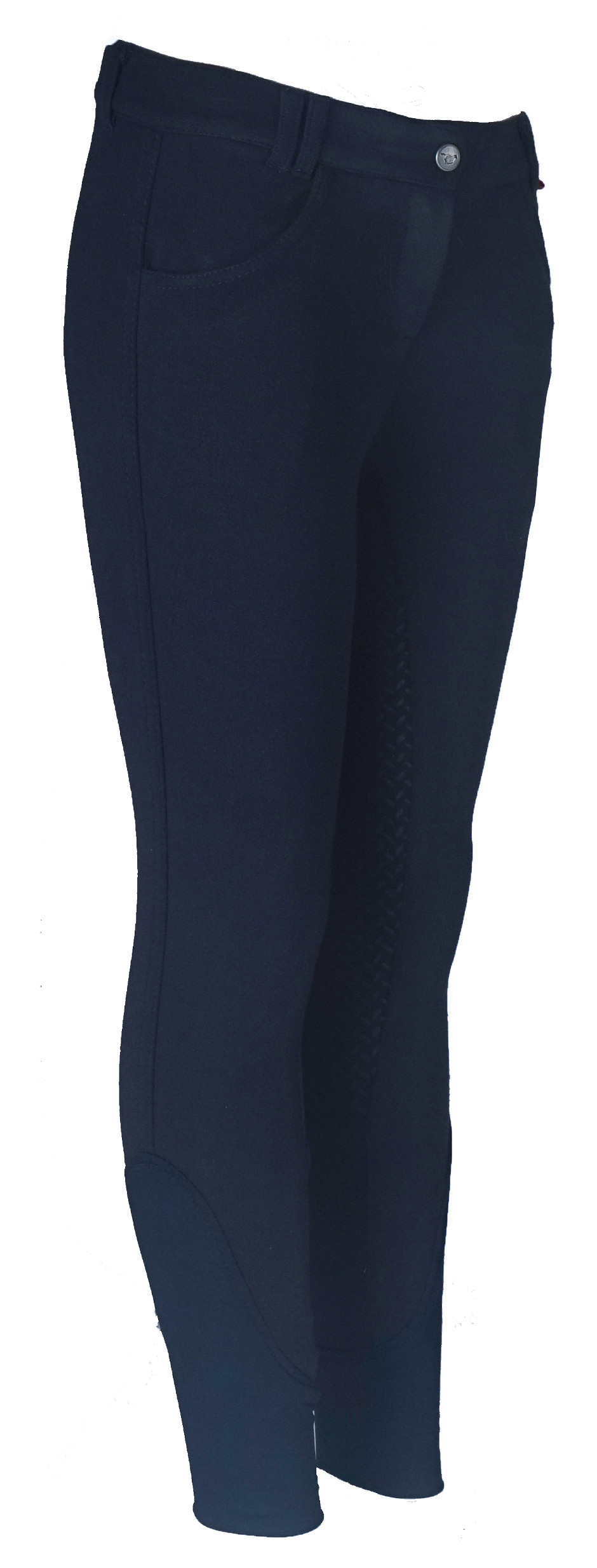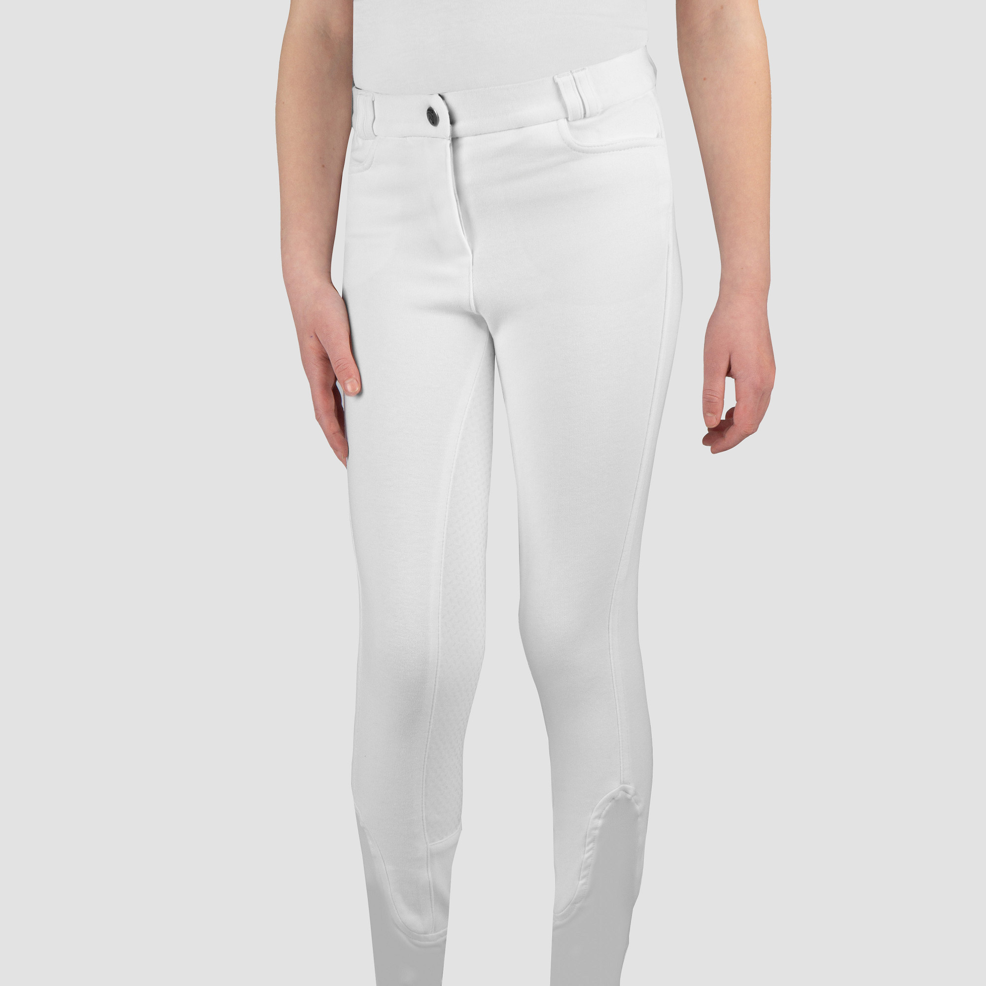 Basic junior rijbroek met twee voorzakken en een matte rijst siliconen zitvlak.