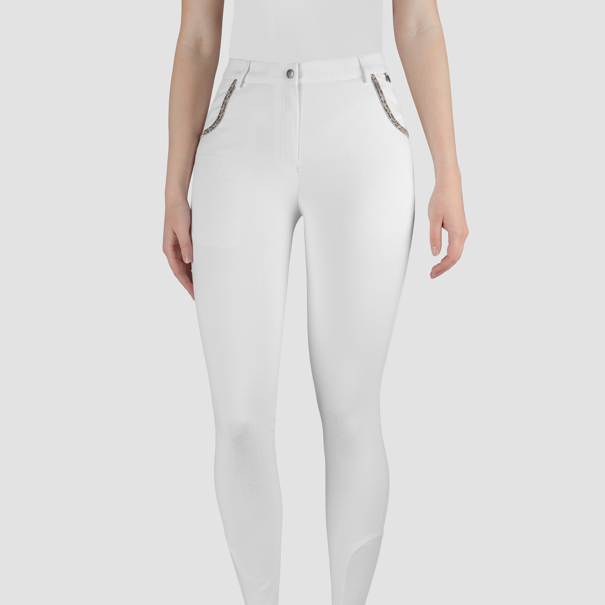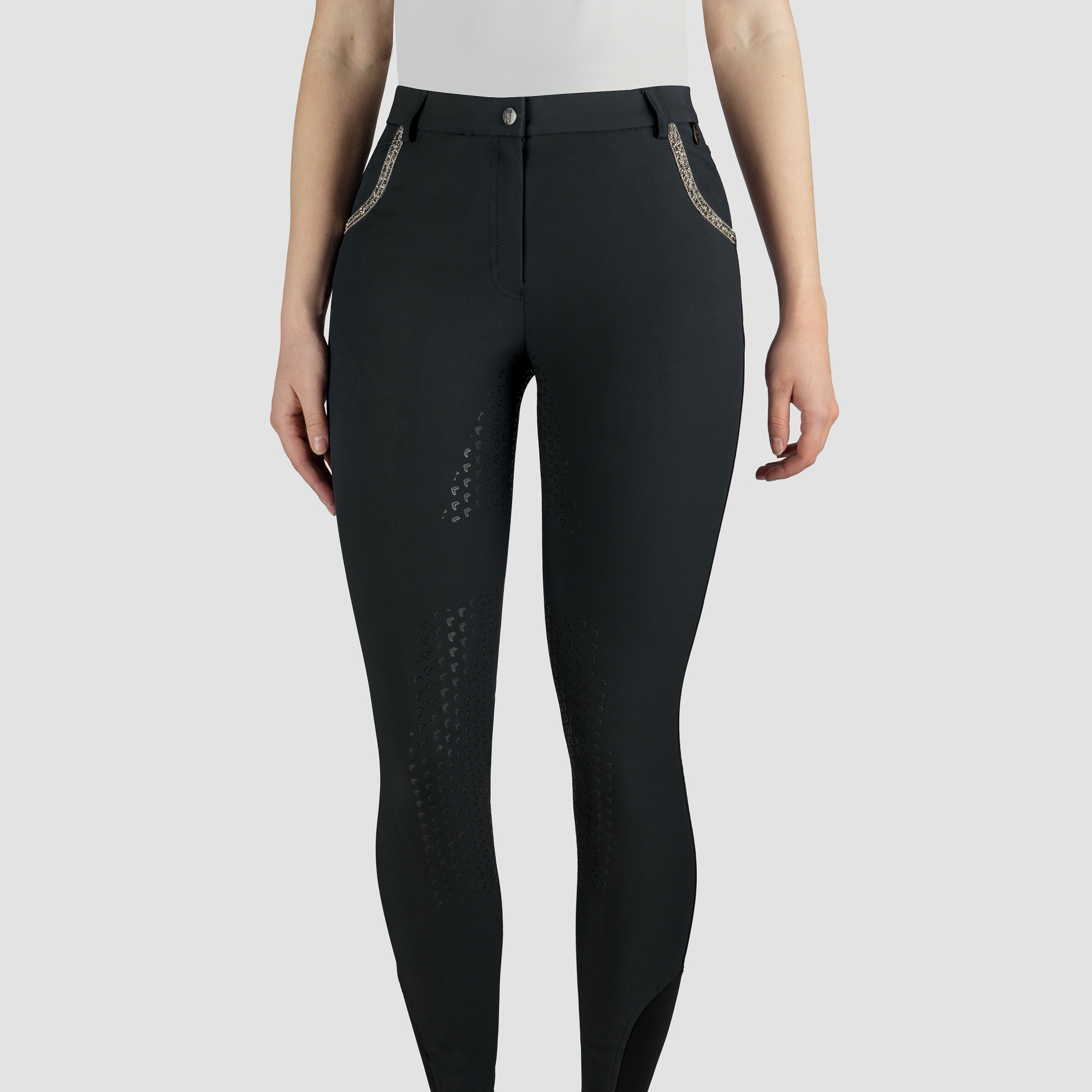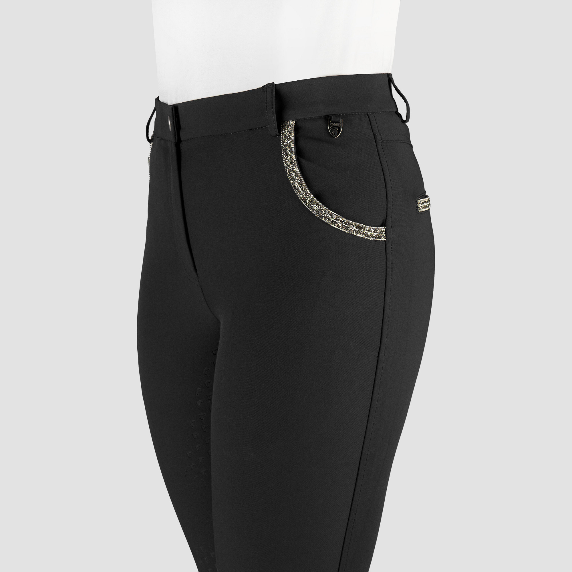 | Een bestseller rijbroek uit hoogwaardige technische stof in een exclusieve, stijlvolle glitter-versie. De Nicola is een elegante rijbroek met een flatterende pasvorm gemaakt van zeer technische Super X-stof met waterafstotende vochtregulerende, ademende en verkoelende eigenschappen. Glittertape op achterste riemlussen en op de voor- en achterzakken, en de subtiel geprinte siliconen zitvlak delen maken van deze rijbroek een must have, zowel voor casual rijden als voor show. Productspecificaties: - Modieuze en elegante damesrijbroek uit hoogwaardige Super-X stof - Water afstotend, vochtregulerend, ademend en verkoelend - Subtiele glitter details op zakken en riemlussen - Twee voorzakken diep genoeg voor mobiele telefoon - Verkrijgbaar in 4 standaard kleuren en 1 seisoencollectiekleur - Geprinte matte silicone zitvlak delen Materiaal: 88% Nylon, 12% Spandex, Super X fabric- geweven Maattabel |